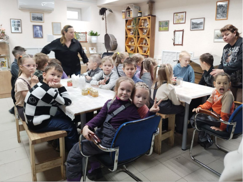 Но, конечно, венцом всего ожидаемого стала дегустация душистого мёда. Дети с удовольствием пробовали разные его сорта, представленные в нашем музее, запивая ароматным травяным чаем.